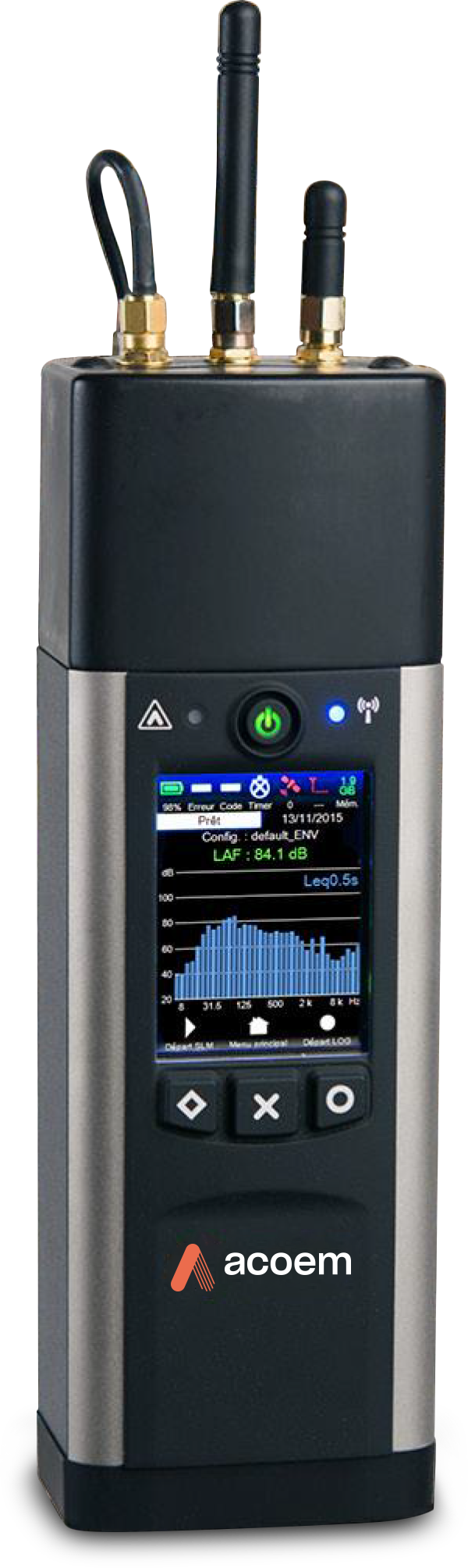 Cube features all the indicators expected by acoustic engineers: Leq, Lp, 1/1 or 1/3 octave spectrum, fast-slow. They can be measured and stored on the basis of an integration period (IP) of 20 ms (min.) to 4600 s (max.) in 5 ms steps.