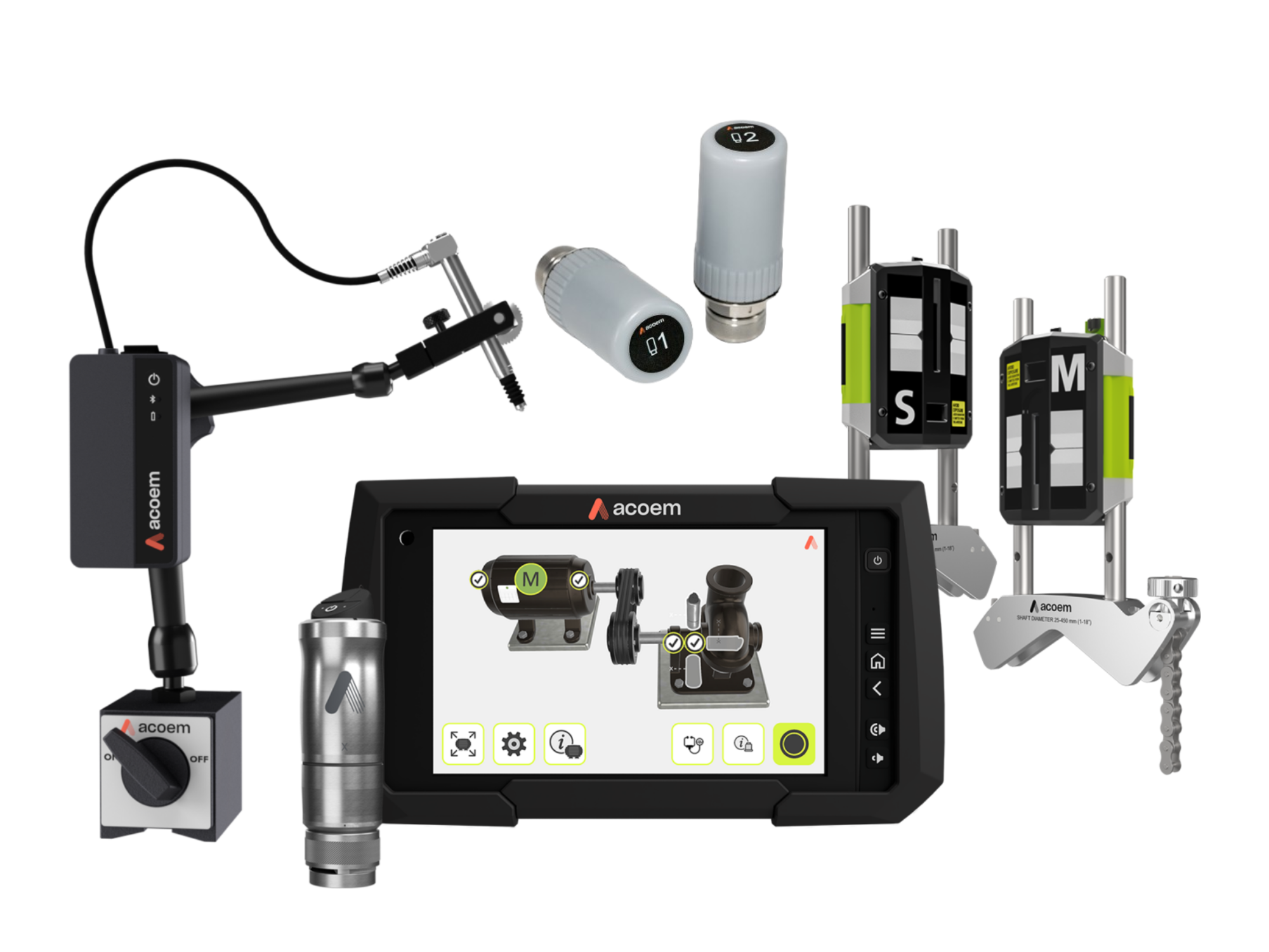 Do alinhamento de eixos ao balanceamento sem fio ou ao diagnóstico avançado de rolamentos, cada solução Acoem foi projetada para aprimorar seu programa de confiabilidade e tornar cada ação de manutenção mais inteligente, mais rápida e mais conectada.