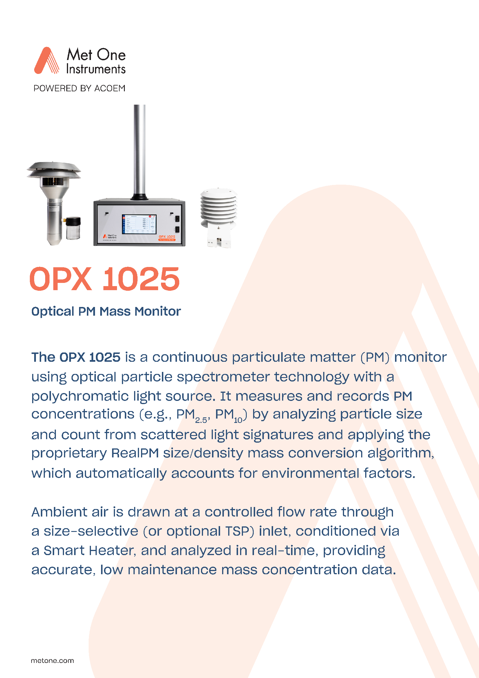 The OPX 1025 Particulate Matter (PM) Mass Monitor is the world’s first PM mass monitor powered by the innovative RealPM algorithm, delivering real-time, climate-adjusted particulate mass data in any environment.