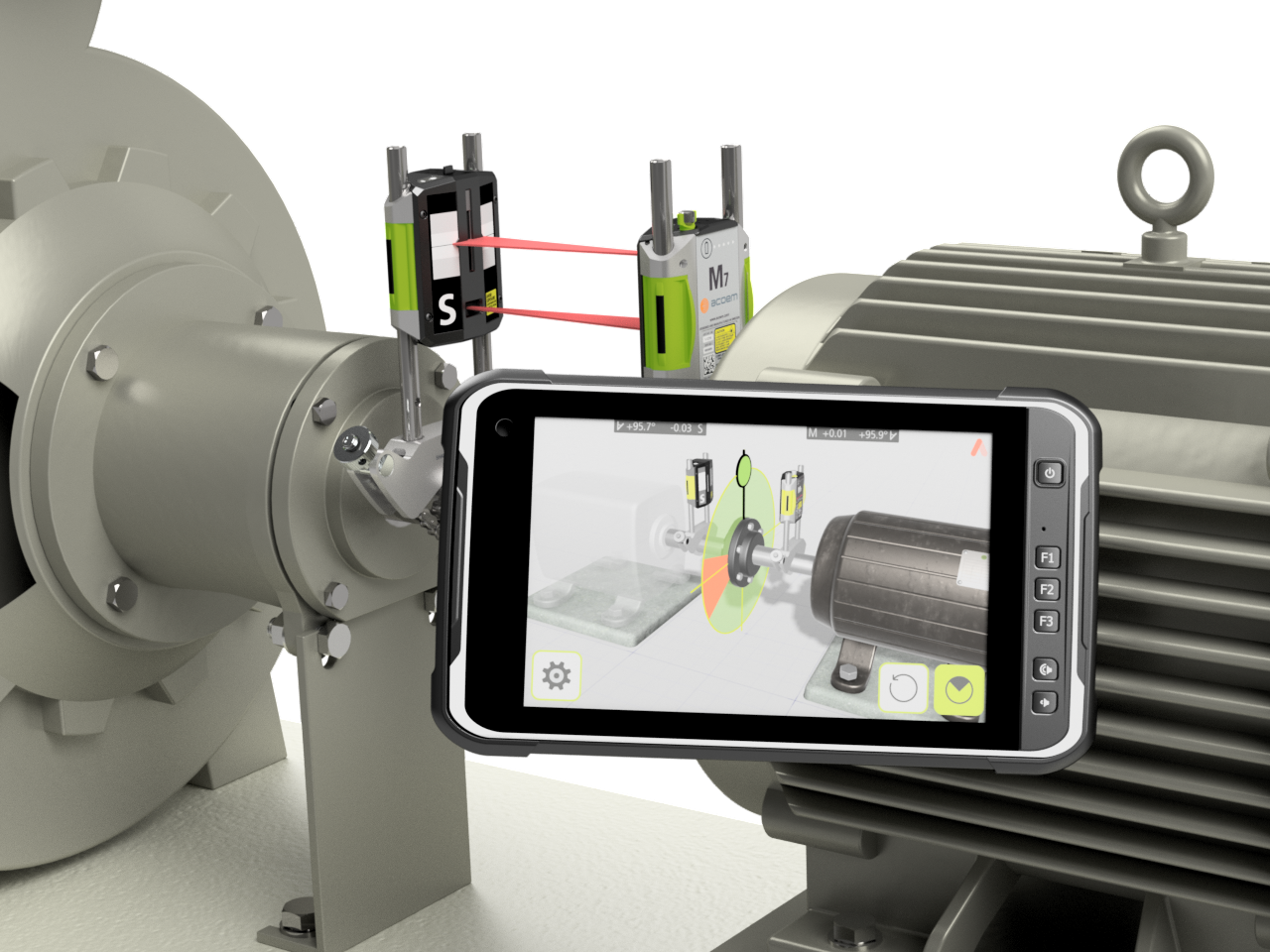 Measures and helps correct misalignment while dual sensors maintain the true position of the shafts, even as unintended movements are experienced during the alignment process