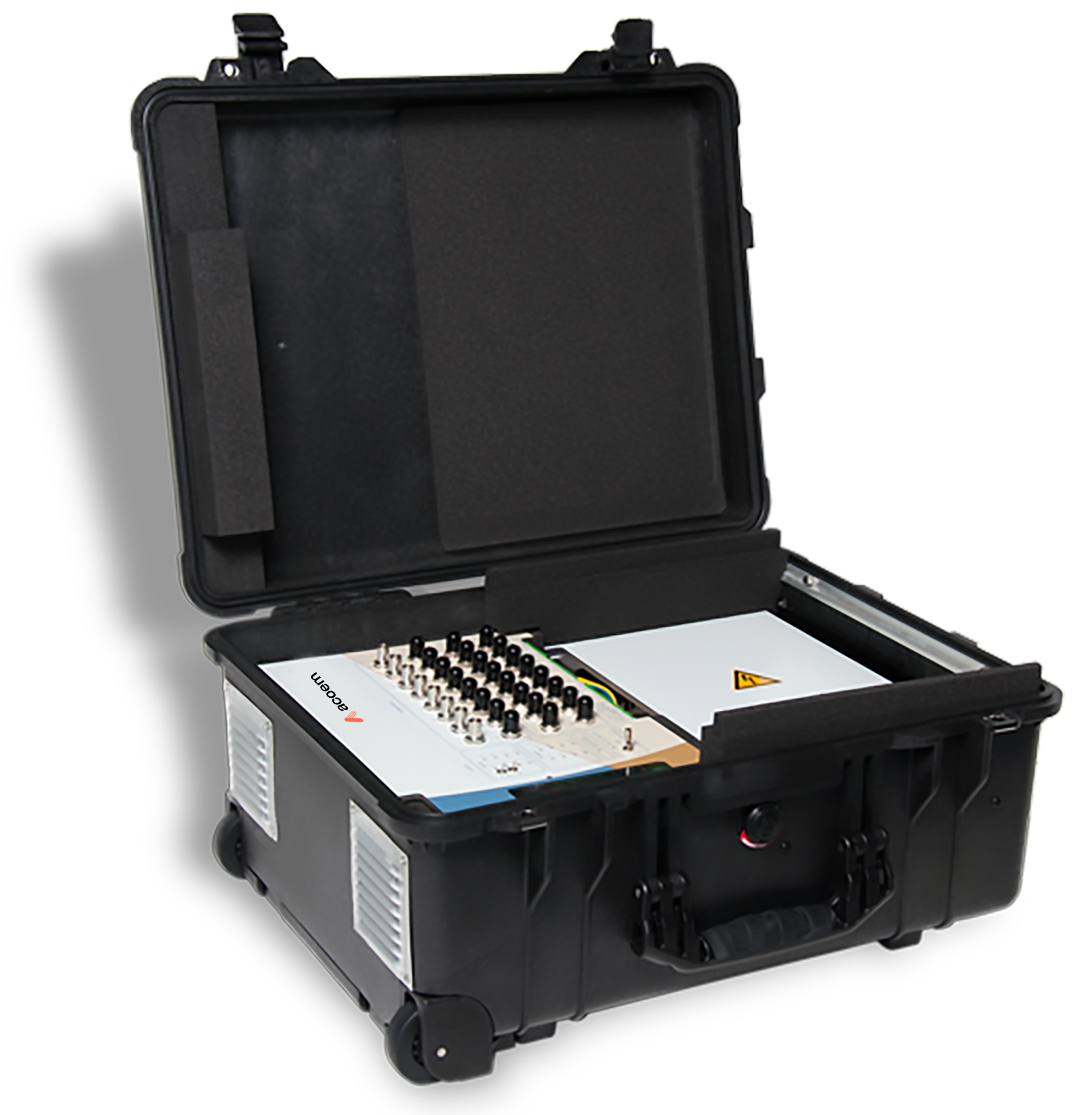 MV-x system can be packaged in a transportable case with BNC plate for 8, 16, 24 or 32 channels to answer to a need of temporary monitoring: