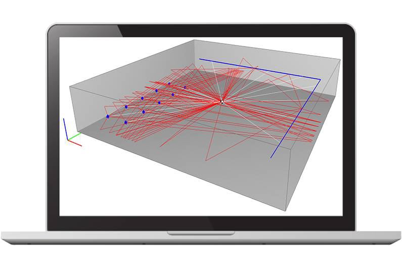In simple cases, rooms are modeled using cubic shapes. Rooms with a more complex shape can be defined through the use of screens. The effect of noise control solutions can then be analyzed by applying absorbent materials with various acoustic characteristics, either on entire walls or partial surfaces.