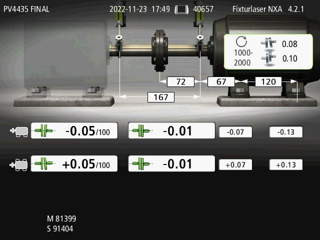 Grâce à la capture d’écran instantanée des mesures, les techniciens ont immédiatement visualisé l’état de désalignement. L’interface graphique du NXA leur a permis d’effectuer les ajustements nécessaires en temps réel, jusqu’à obtenir un alignement optimal, conforme aux tolérances recommandées.