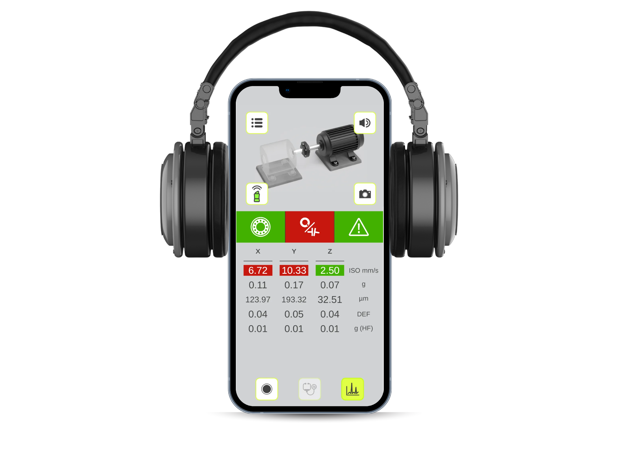 Branchez vos écouteurs et écoutez la diminution en temps réel du bruit de vos équipements rotatifs pendant le graissage.