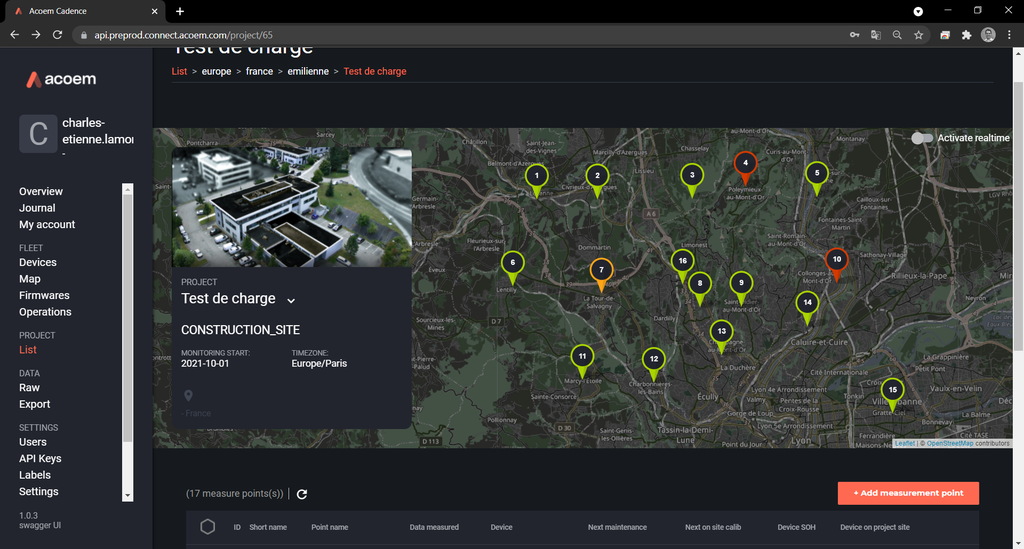 The perfect project management tool, it provides real-time results for heatmaps, overall levels and multiple indicators. Capable of managing an unlimited number of projects, devices and users as well as export data and receive triggered alarms no matter your location, it is the simplest solution for all your noise monitoring needs.